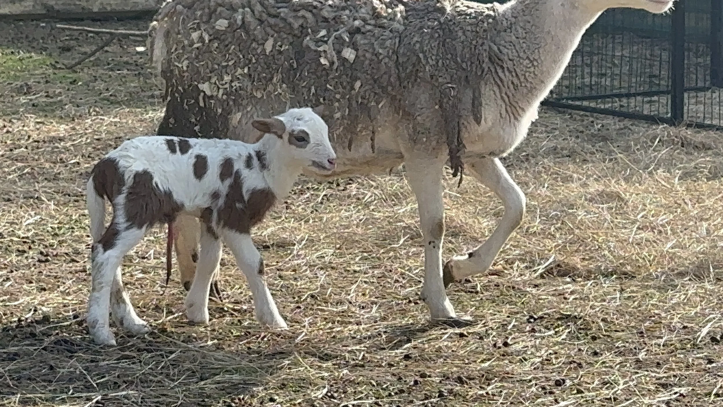 A Rowan Ranch dorper sheep with her ram lamb, “Shooter”.