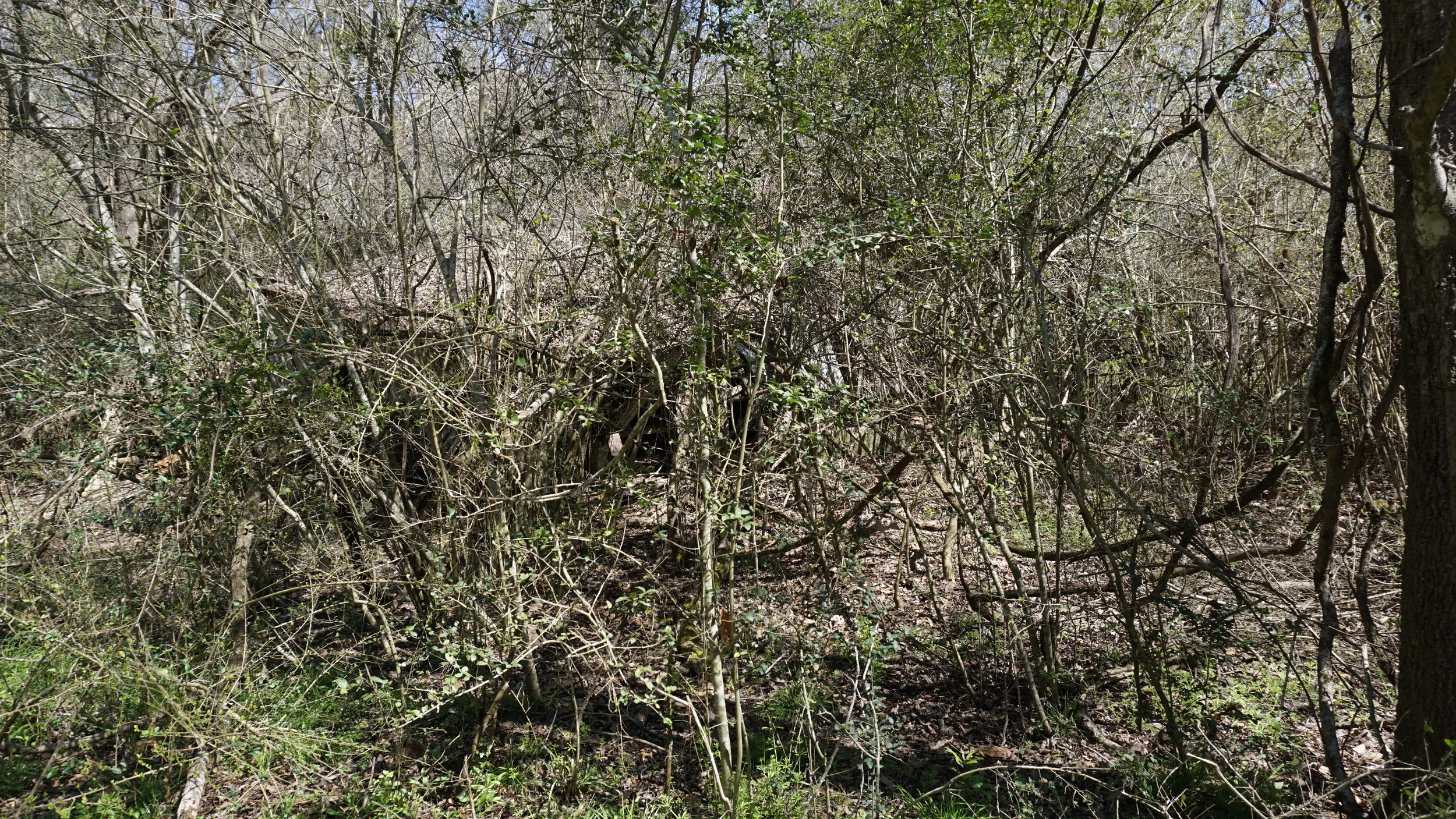 Next, we take a ride through the back of the property. The thickets are pretty intense but nothing a little trimming cant handle. We take a breather at the very back corner and just stop and listen. Silence. No cars. No airplanes. No trains. Just nature. What a huge relief. Our own personal little pocket of paradise. Deer tracks can be seen in the mud. Birds chirping and flitting about. Butterflies grace the skies with their presence. Hogs have rooted some of the ground. The abundance of wildlife is encouraging, with no pesky humans to intrude except us. We continue our ride up to where the old family garden used to be. It’s all overgrown and no longer producing obviously but is a nice memory of a time of simpler things. We pass by one of the many ponds and then up a trail to where Kristen and her husband are thinking about building. We pop out on the other side of the hayfield, again just shocked by its openness. We could get used to this.
