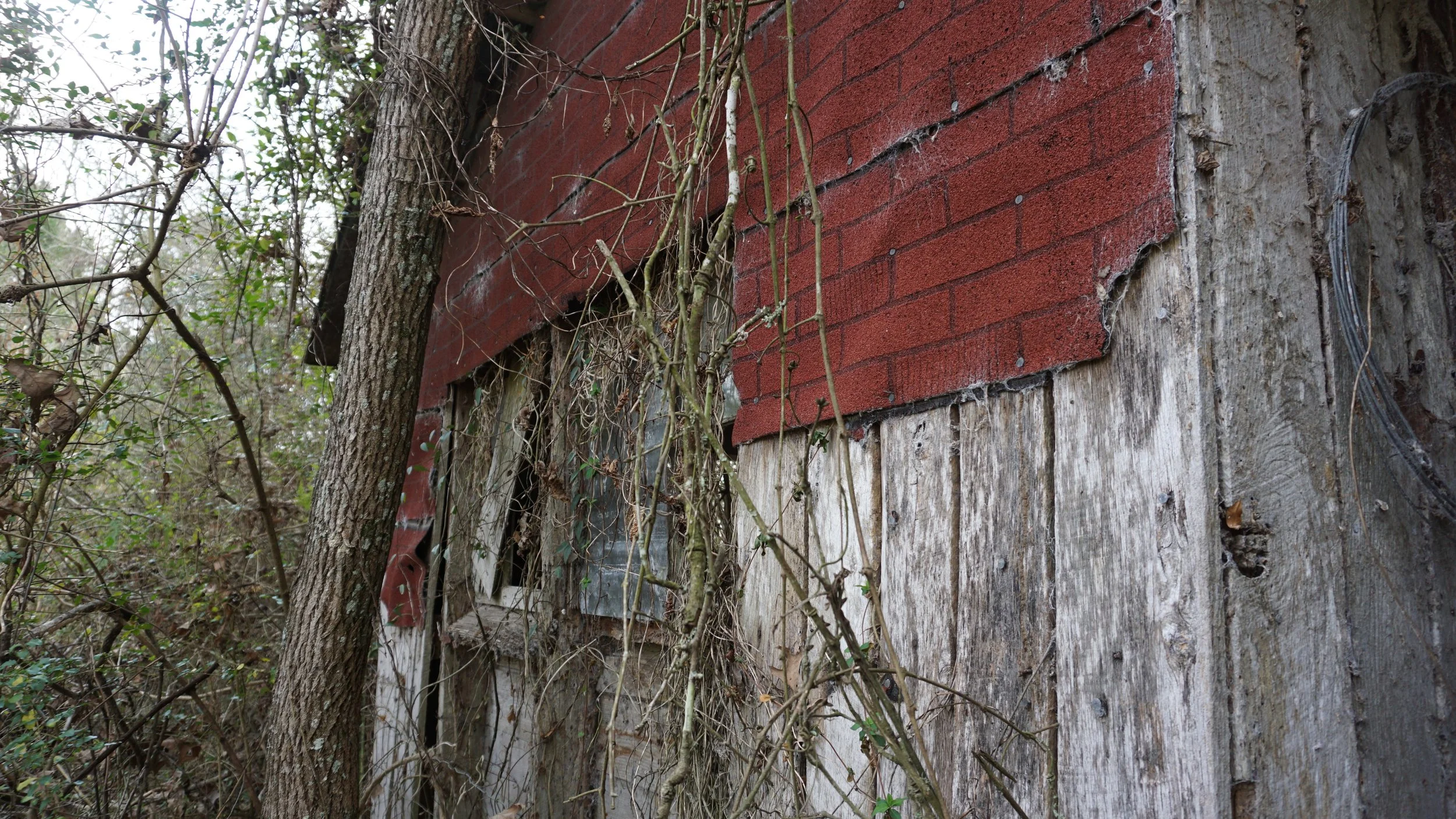 The next day we wake up early and go grab breakfast with Jaken’s grandparents at the local diner that has been a staple of the area since 1956. We discuss the plans for the day and meet back up out at the property with Jaken’s grandpa who brings over a tractor. The clearing process speeds up exponentially with the use of the brush hog to clear all the brush and brambles while we hand clear more. We get creative and drag some of the bigger limbs with the four-wheeler and it become apparent just how long these vines have been growing. Grapevines as thick as your arm intertwine and wrap around everything holding on with all their might. Any time we cut one clear liquid pours out of the opening as if it’s crying. The conflicting feelings of cutting down the nature and honoring the ancient barn well up but sacrifices must be made so we continue the clearing.