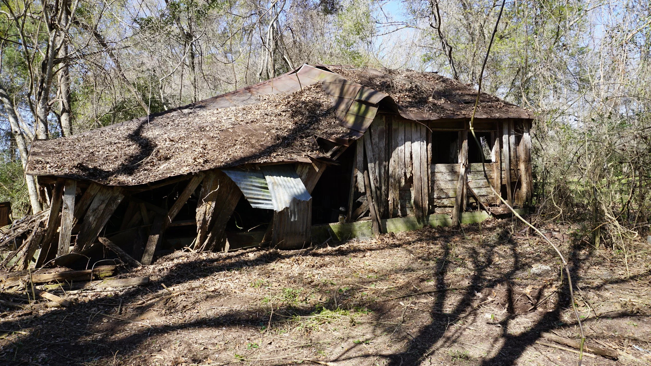What we can tell is that there are two rooms separated by a hallway. One has a door to the outside and on the other side to to back of the barn. The other has a window and a door that opens to the hall way. The hallway leads to a large back area that has since fallen down. There appears to be a small lean-to on the right side. There are two openings on either side and what used to the a large barn door on the back center. The wood is beautiful but badly deteriorated. We will save what we can.