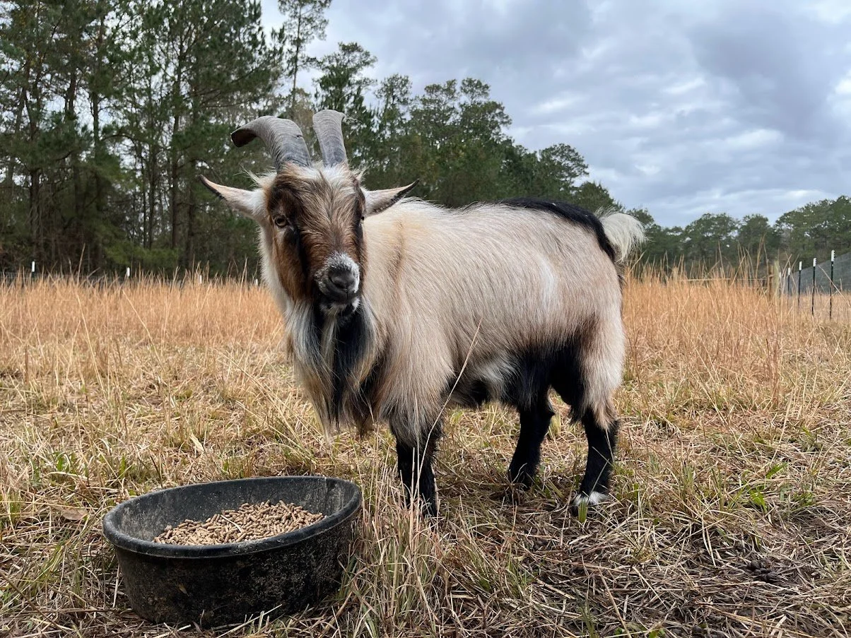 Like the goats. We decided it was time to get a billy goat. It has been long enough that if our girls were pregnant they would be showing and so far they have not given any indication they could be pregnant. Thus we decided to add a buck to the goat pen. Ironically enough when we started looking there just happened to be a Nigerian Dwarf buck literally right down the road. We had already decided that was the kind of buck we wanted as they are good crosses with Nubians and Alpines for milk quality so we loaded up a large dog kennel and drove one minute down the road to get him. He is a nice fawn color with dark ridges and lovely curled back horns. The owners had used him for showing and breeding which he managed to do several times. He seemed like a great fit for our farm so we brought him home and put him in the pen. For the first night we put the lady goats in the electric netting with the sheep so that he could get accumstomed to his new surroundings without everyone feeling threatened. Turned out to be a completely pointless endeavor though as he managed to get out of the permanent fence, unplug the electric fence, and get in with the girls and sheep. We found them all chilling together the next morning so guess they got acquainted quickly. We then moved the three goatmigos into the perma-fence and left the sheep in their electric netting.