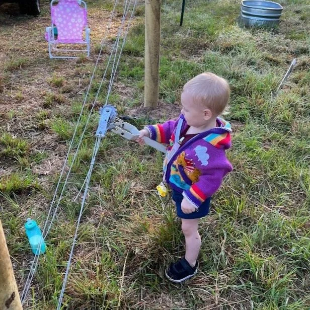 Once everyone was in the new coop and the fencing done to close them in we let them out into their new extra large space. The immediately started working on the new grass and bugs available to them happily. I went and gathered the new flock of chicks we had raised up and moved them into their little coop out there as well to start integrating into the big flock once they are older. It felt so good to have them all squared away and in a more escape proof setting. Just in time for Jaken’s aunt to roll up with the new farm addition. Turkeys.