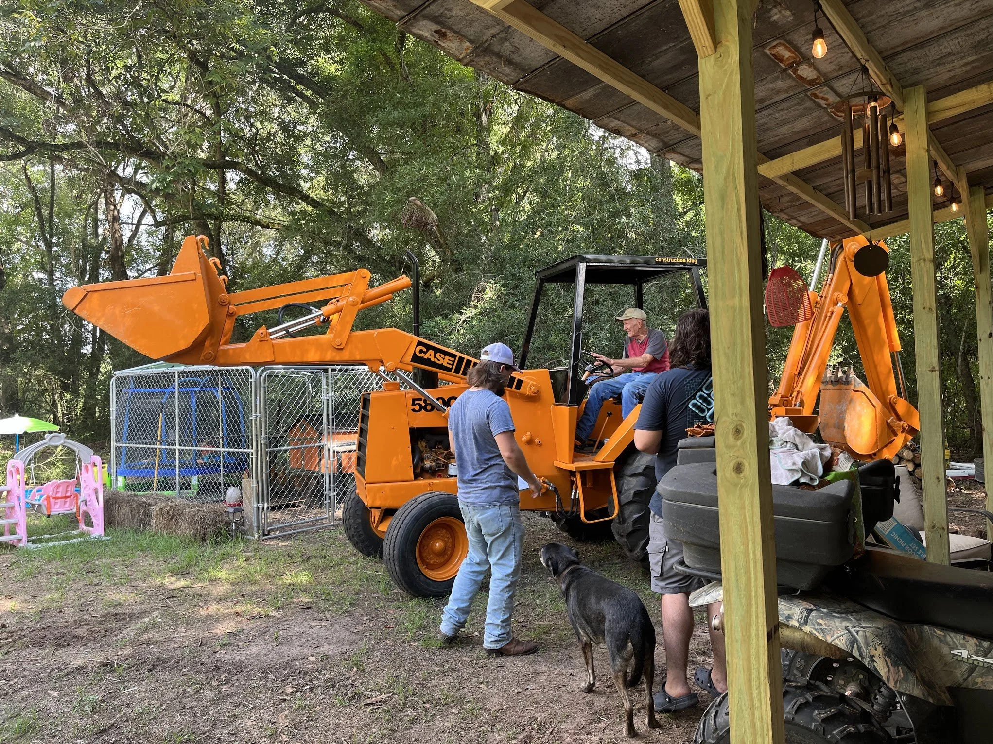 In a previous post I mentioned the small inconvenience of having no septic and the fun experience of getting to carry buckets about with the…well you know, but no longer!! We finally had the time, supplies, ad tools to install a septic system! Grandpa Herman had bought a backhoe a while ago and has been working on it ever since. After quite a bit of work and time he finally got it ready to rock and roll. Jaken, with the expertise of his dad, purchased a small make shift septic tank and all the pipes and things needed for it. Then came the day to put that bad boy in!