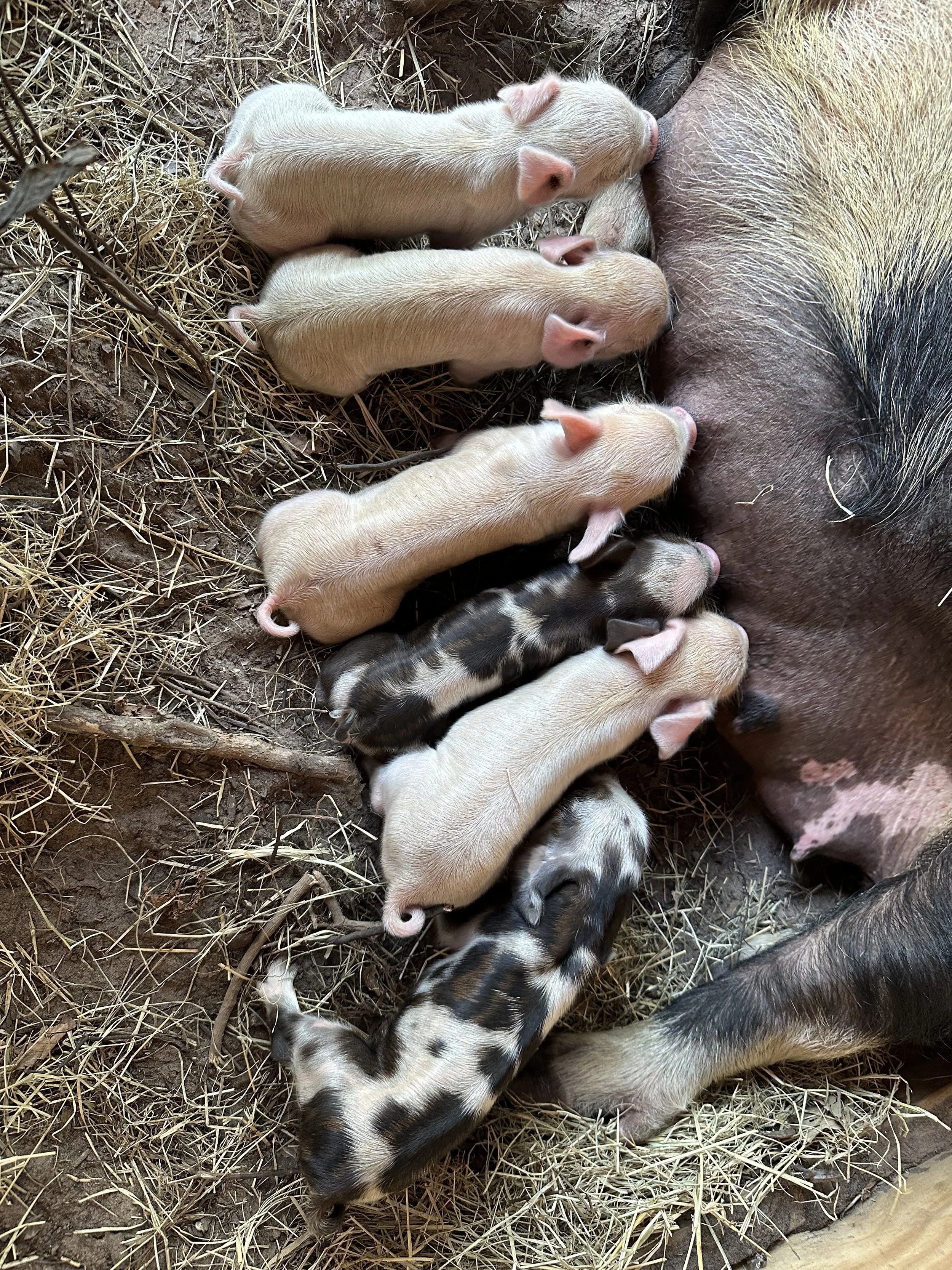 By the end of the night our sweet sows gave us 18 piglets between them. One was lost before we got to them and two didn’t survive their first night so a total of 15 cute little piglets are on the farm. 15 tiny rewards during one of the harshest summers we’ve ever experienced. We can't wait to see them grow.