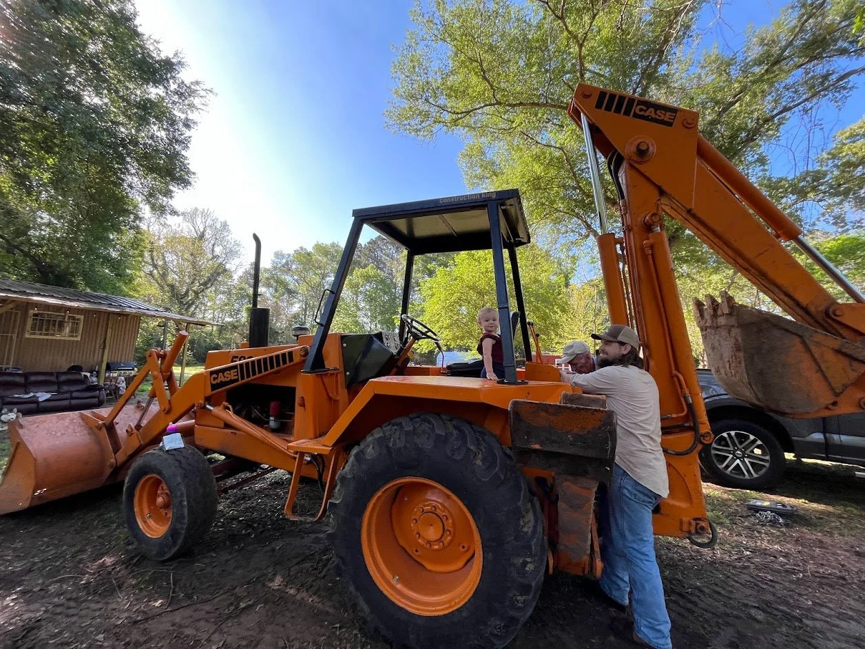 Jaken’s grandpa had bought a backho at the beginning of all of this ranch shenanigans and he was itching for a project to use it on. So we gave him one. The property already has several large majestic pecan trees scattered around it and we have slowly been trying to clear around them and bring them into the light so they can flourish. One such beauty was absolutely smothered by brush and vines and directly next to the little trailer we are currently residing in. So gramps loaded up on his backho, drove it over to the house, and got to work. By the first day he had cleared a pretty big chunk of brush away and already discovered a very large coral snake. Love that it was just chilling right next to where Hope likes to play with her toys….Thankfully that snake is no longer with us.