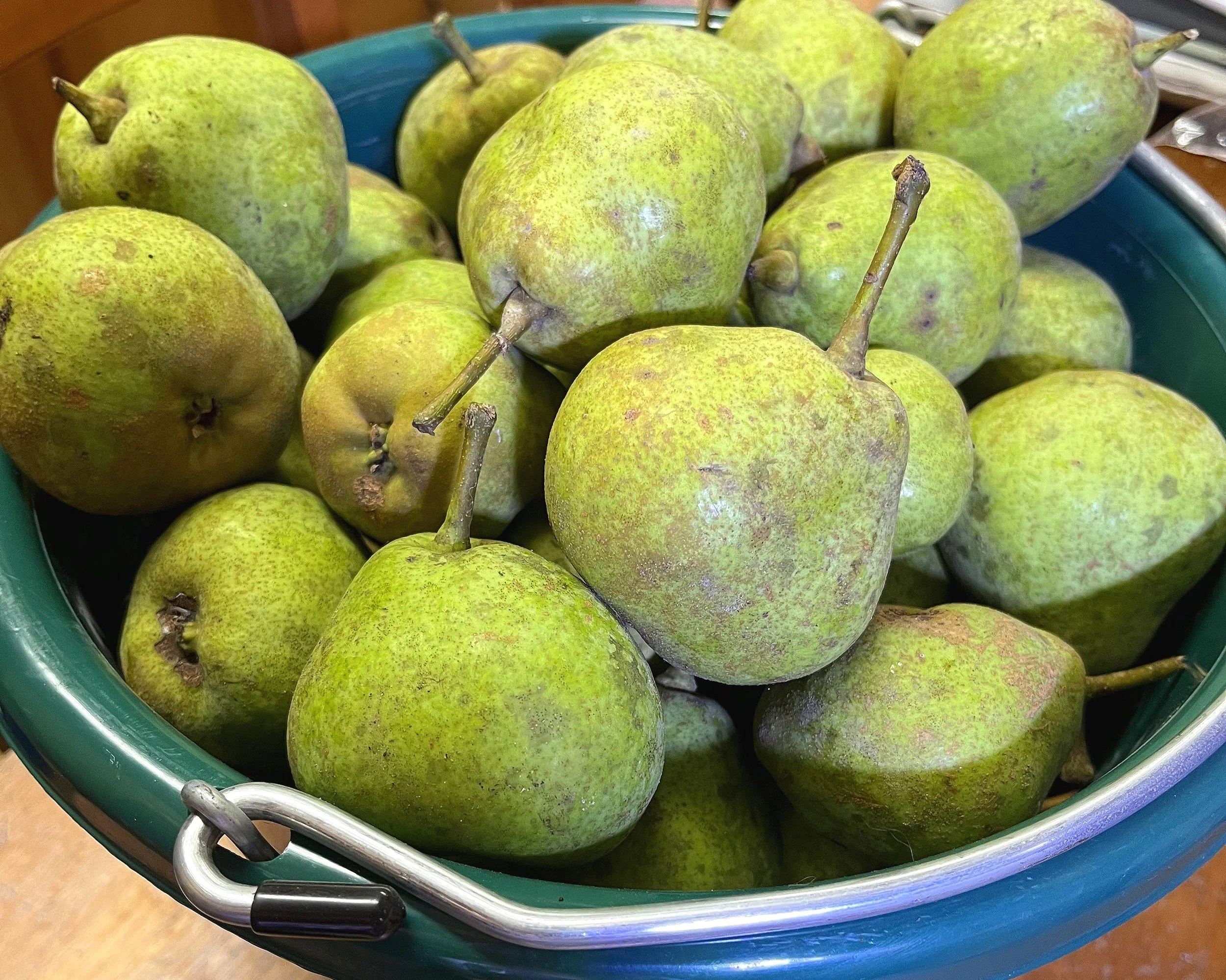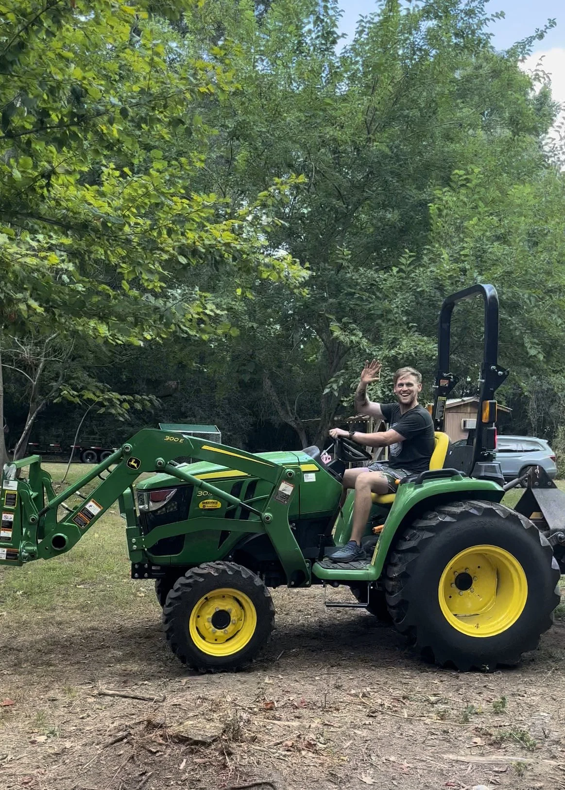 Our buddy Josh came out to visit and helped us with the paint. While painting he found an axe decided to try his hand at chopping down a tree. After that Jaken taught him how to drive the tractor and they got to work moved the fencing equipment to the area where they plan to build it. He then hopped on the mower and took it for a spin before climbing in the bucket of the tractor and picking the ripe pears. We are totally sure if they are ripe or not but they are big and starting to look like you would expect a pear to look so they picked all they could and we are going to attempt to can them in a bit.
