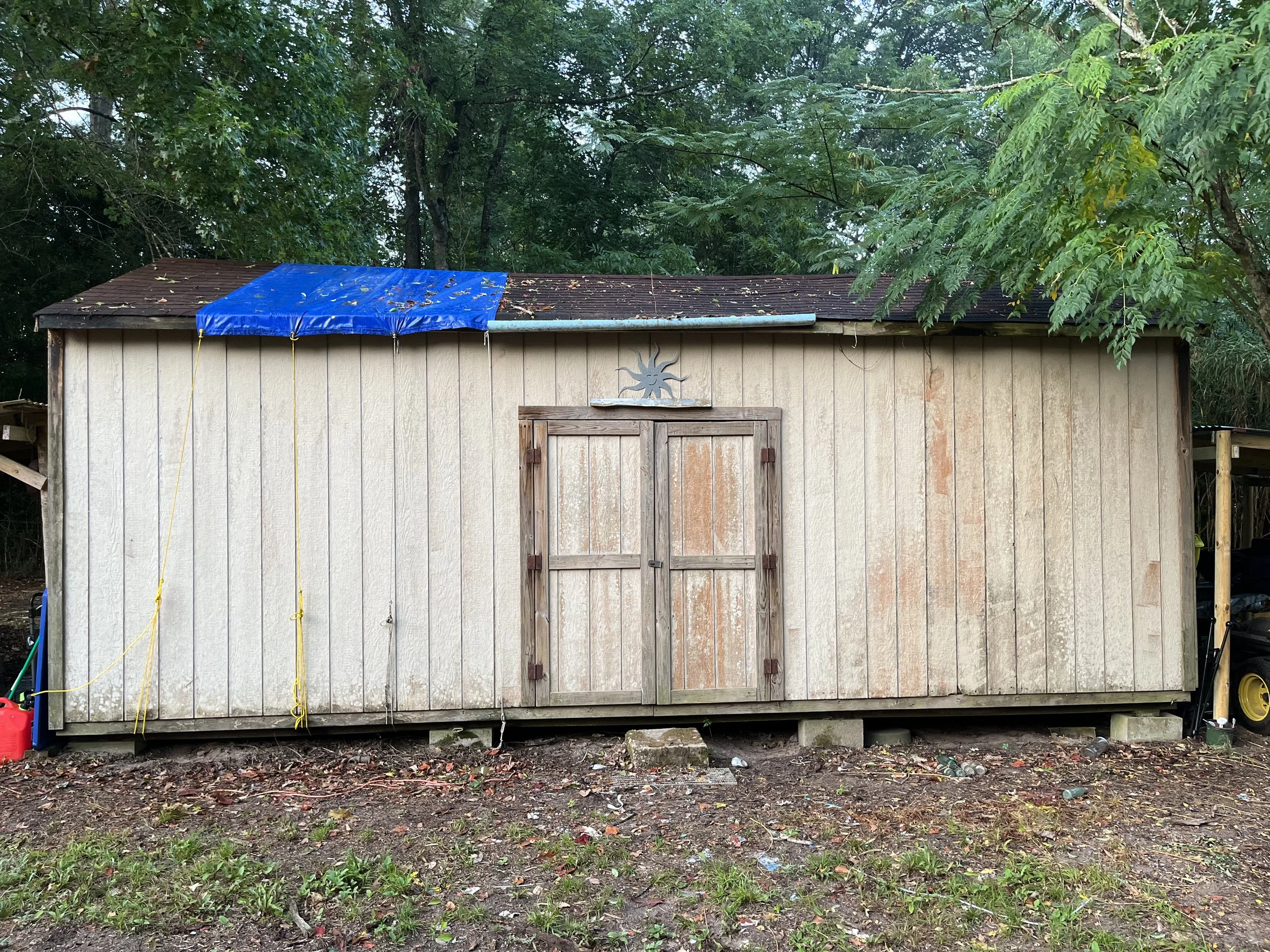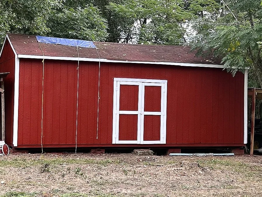 We have mentioned the storage shed a few times and never really specified what it truly looks like. Back in the day when it was built it was a clean tan color with brown trim but over the years with rain, hurricanes, and just age its turned a weird dirt color with mold splotches and paint chips and holes. So we decided we would paint it a gorgeous barn red color with white trim. The paint finally came in the mail and Jaken’s grandpa came over with his paint sprayer and they got to work on the red. After a couple hours and a couple coats they polished off the five gallon bucket of paint and got the entire shed painted. Next it was my turn to hit the trim with the white. I climbed up on the ladder and started brushing on the white on every piece of trim on there. At times this required standing perilously on the lean to or the tippy top of the ladder but Jaken made sure to be wary and ready to catch me if I fell (which I managed not to do). A few hours later the shed was done and looked so shiny and new! Its incredible what a little paint will do.