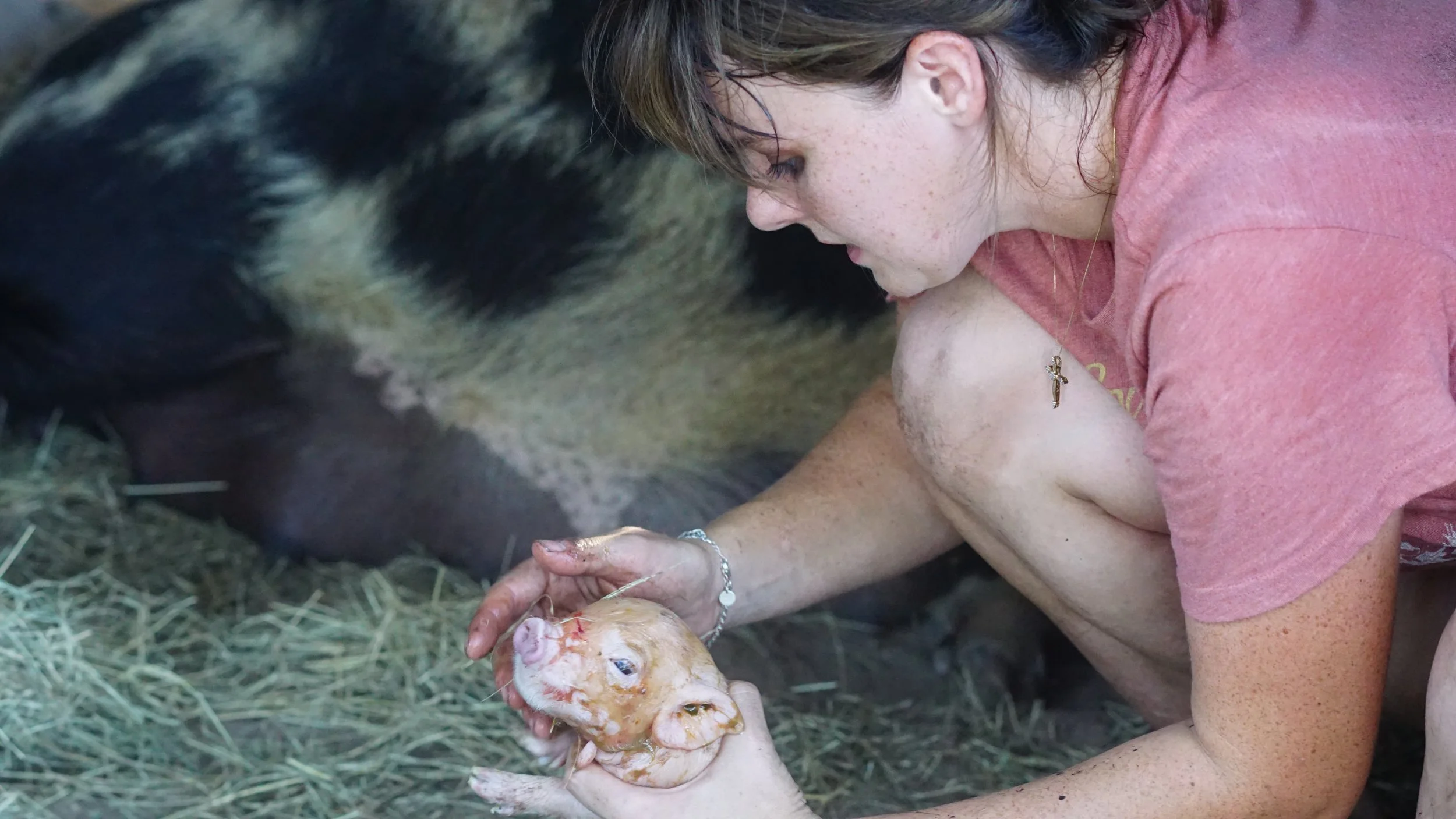 Another thing we didn’t realize would be so important: vigilant assistance. While Kunekune sows are generally proficient at farrowing, unforeseen complications can arise. Be prepared to step in when necessary. In some cases, Kunekune sows might need a helping hand during farrowing. If you notice a piglet is struggling to emerge, use clean hands (or latex-gloved hands, in our case) and gentle pressure to aid its passage. Carefully remove any amniotic membranes obstructing the piglet's airway and ensure it begins breathing. For us, this only happened for a few piglets. On the other hand, intervening too quickly can lead to stress, so always assess the situation before acting. When your sow has a piglet emerge, it is likely she’ll lay down as soon as it passes. If you don’t have a proper farrowing pen, this could lead to the piglet being crushed. For us, we had to do a lot of piglet moving during the farrowing of our two sows in order to keep them safe.